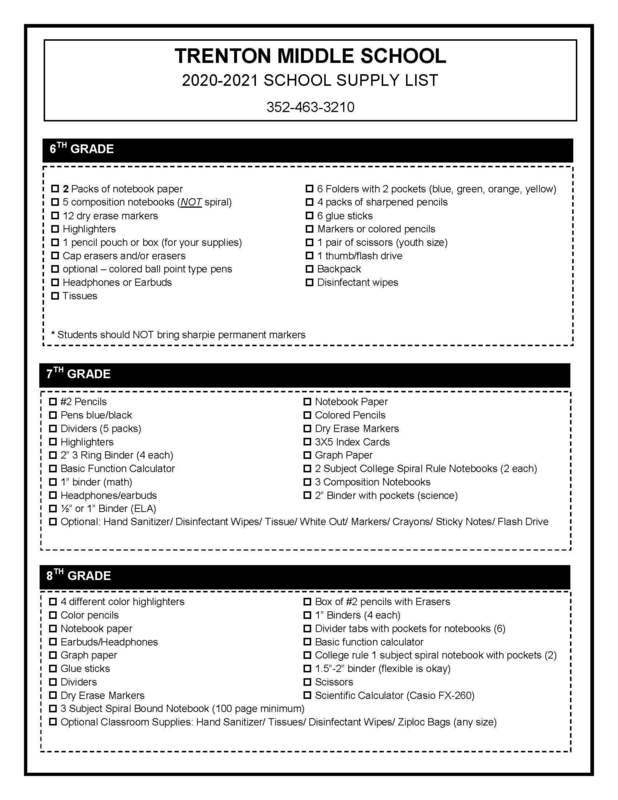 School supply lists for the 2020-21 school year are available now! Please see the lists below or go to the Documents folder in our app and look under "Supply Lists" for .pdf files of each school's supply list.