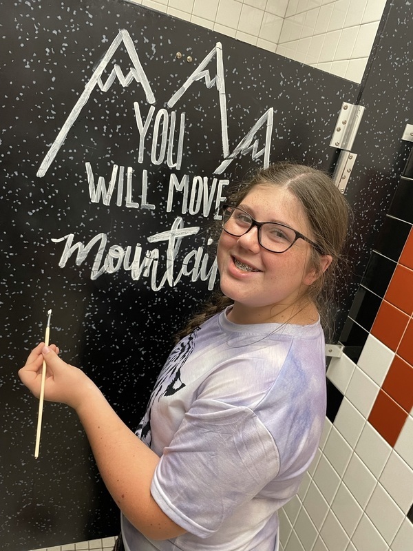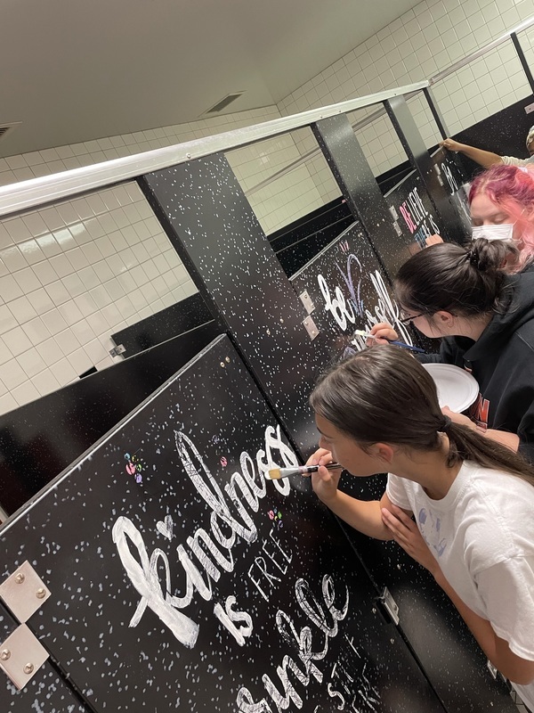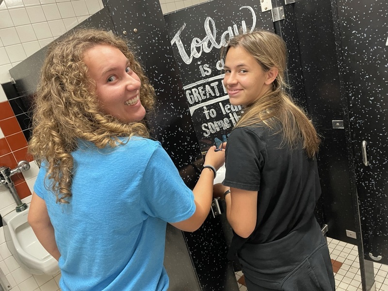 This week, the THS Interact Club worked hard after school to freshen up the artwork in the High School bathrooms.